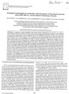 Veski, S.; Heinsalu, A.; Kirsimae, K.; Poska, A.; Saarse, L. (2001). Ecological catastrophe in connection with the impact of the Kaali meteorite about 800-400 BC on the island of Saaremaa, Estonia. Meteoritics and Planetary Science, 36 (10), 1367−1375.