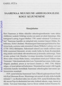 Püüa, G. (2003). Saaremaa muuseumi arheoloogilise kogu kujunemine. Saaremaa Muuseum, kaheaastaraamat 2001–2002 (43-65). Kuressaare: Saaremaa Muuseum.