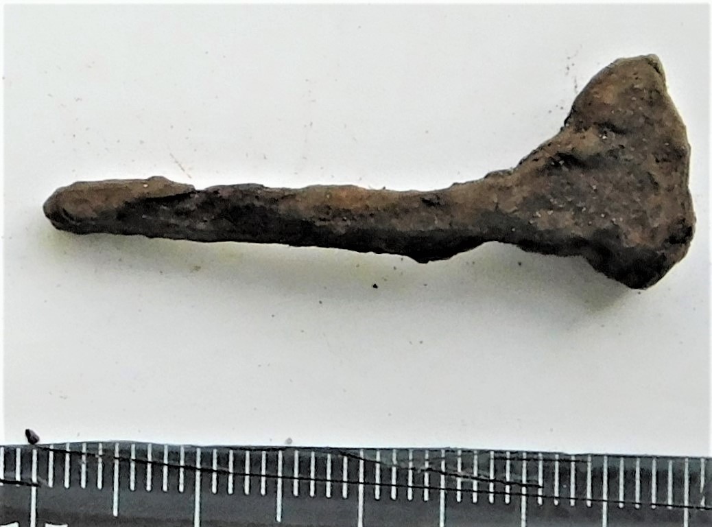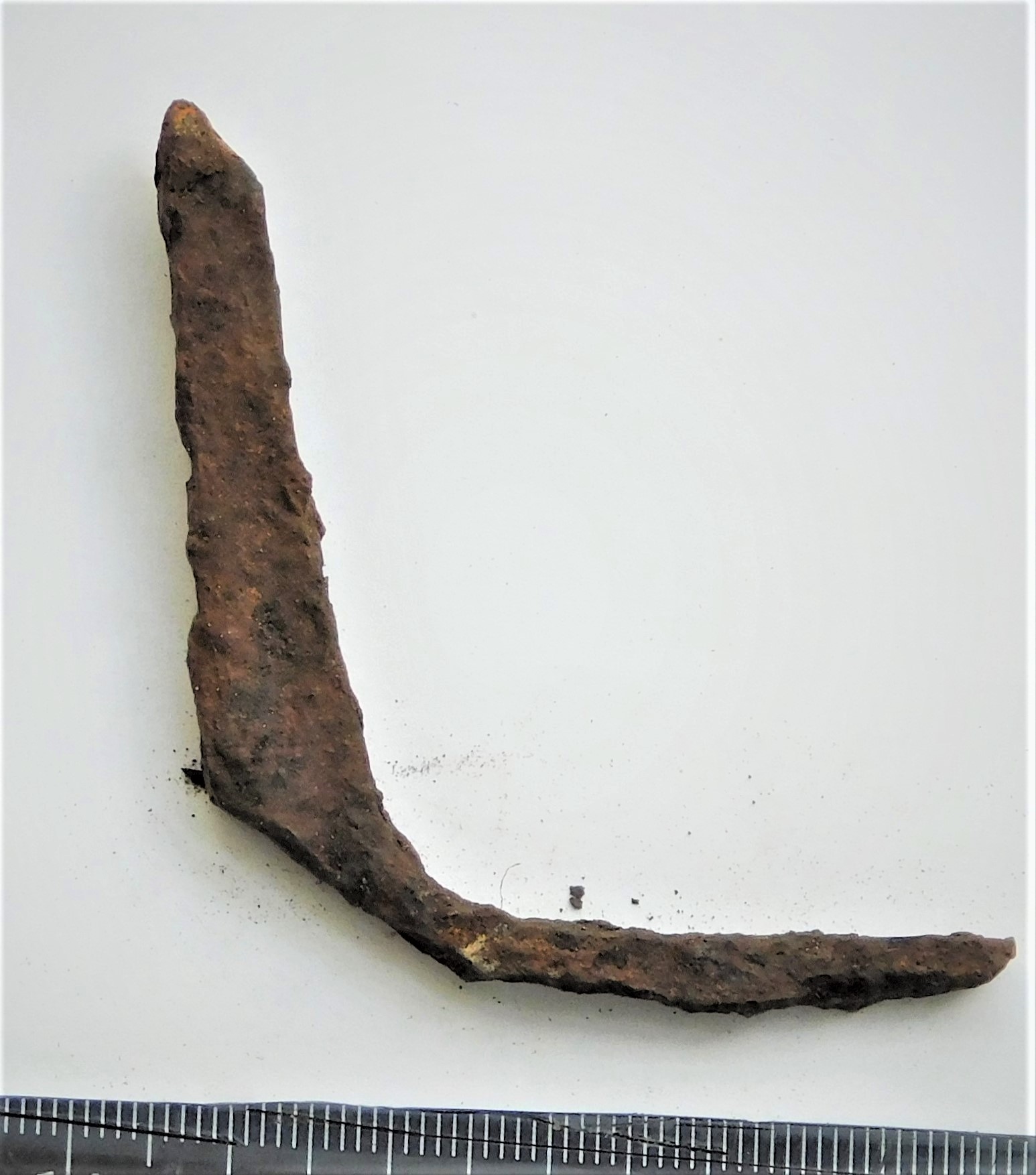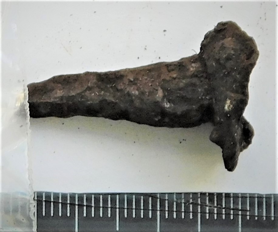 Odaotsa lehe katke, raud. Arvatavalt E-tüüpi odaotsast, üleminekukohalt putkele. Lehe ristlõige lame romb.