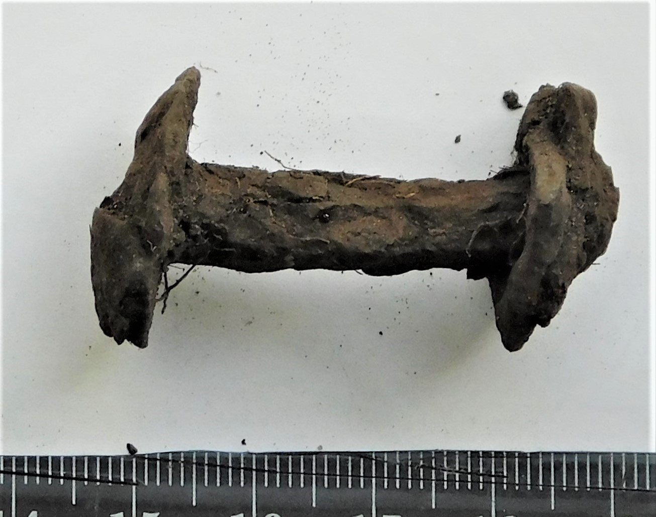 Kaaluviht, kerakujuline, raud + pronks. Otstel sõõrikestest joonest ornament.