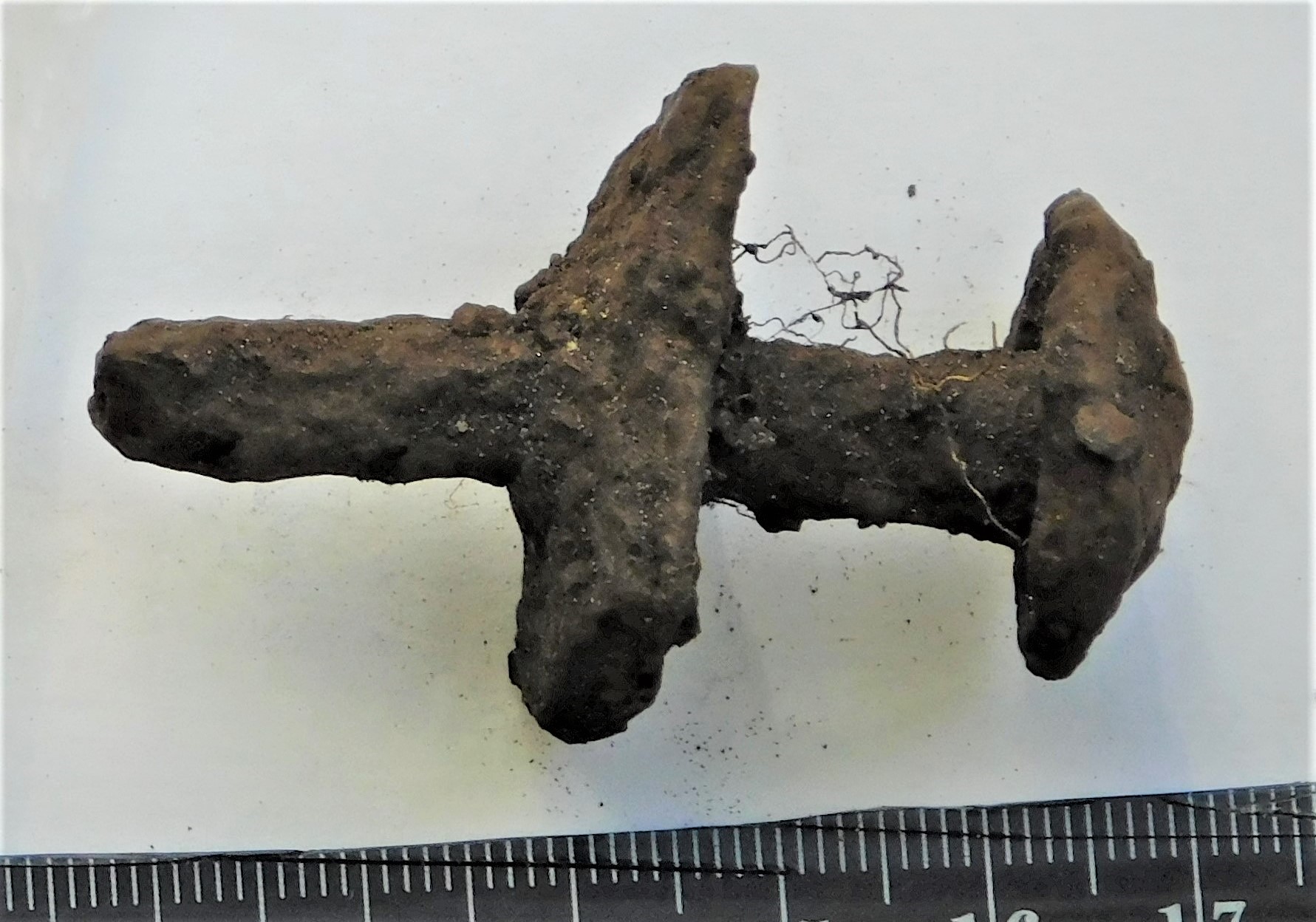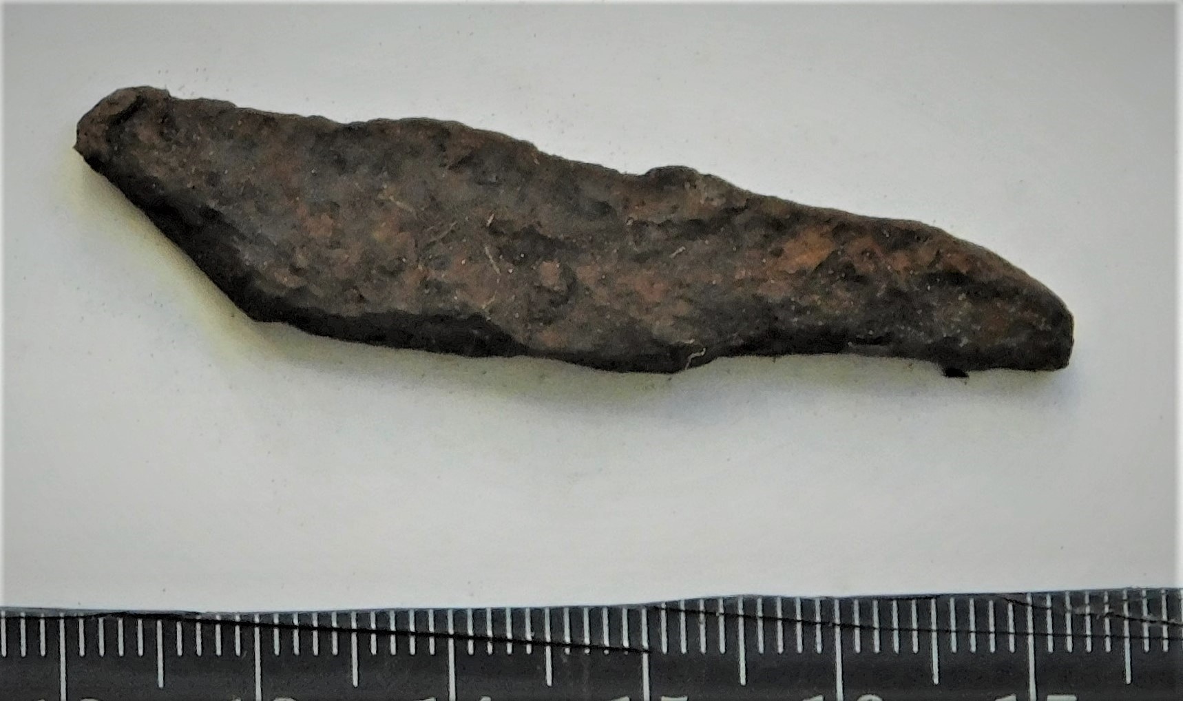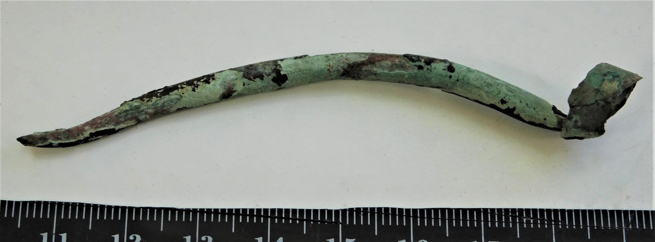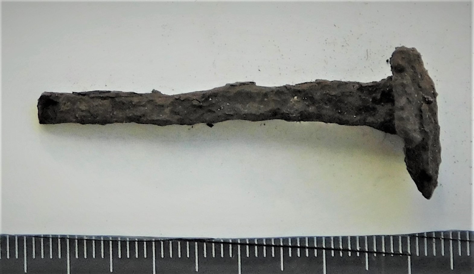 Hoburaudsõle nupp, lühike kitsas rullots, vasesulam. Sellised sõled olid balti aladel levinud pikema aja vältel 8.–14. sajandil (Vaska 2017, 26; 2019, 201). Otsa kuju järgi otsustades võiks kuuluda 8.-9. sajandisse (Mägi-Lõugas 1994).