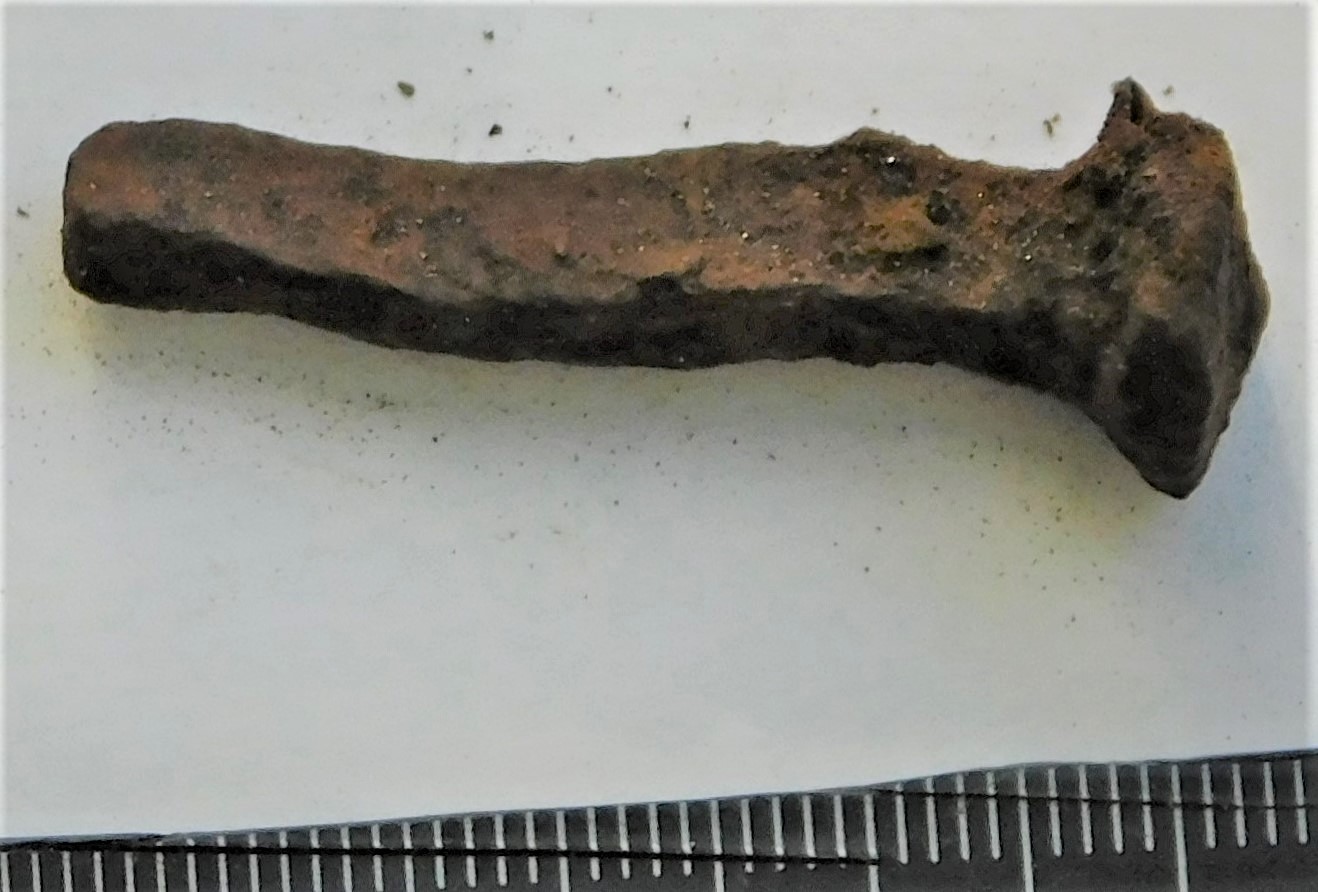 Odaots, rootsuga, raud, pajulehekujulise lehega. Taolised viskeodaotsad olid enamasti levinud VI-XI sajandini (Griciuvienė 2005, 122), kuigi antud katkendi põhjal ei saa välistada ka dateeringut kuni 11. või isegi 13. sajandini (Tvauri 2014, 174-175).