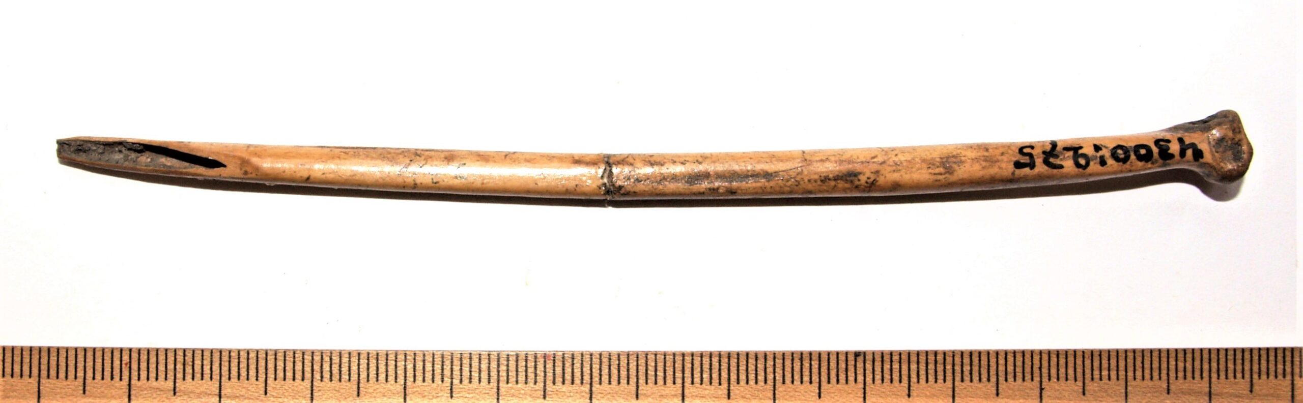 Õhukese laieneva keskosaga sõrmus, hõbe. Sarnaseid sõrmuseid on leitud Eura Luistari ja Saramäki matustest Soomes, kus need dateeritakse 11. sajandisse (Lehtsalo-Hilander 1982, 124–126) ja Abelnieki matustest Lätis, kus need dateeritakse 11. sajandi II poolest kuni 13. sajandi alguseni (Vasks 2008, 157–158). Lisaks leidub selliseid sõrmuseid Ojamaal, kus need on dateeritud 11.-12. sajandisse (Thunmark-Nylen 1998, Tahv. 143; 2006, 158). Saaremaal on samasugune sõrmus leitud Valjala kirikaiast 13. sajandi või 12. sajandi päris lõpu kontekstist.