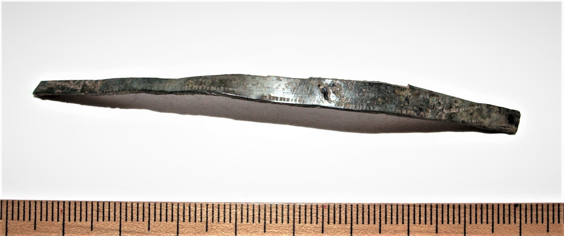 Ese, tõenäoliselt hoburaudsõlg, kirvekujulise laiendiga, vasesulam.