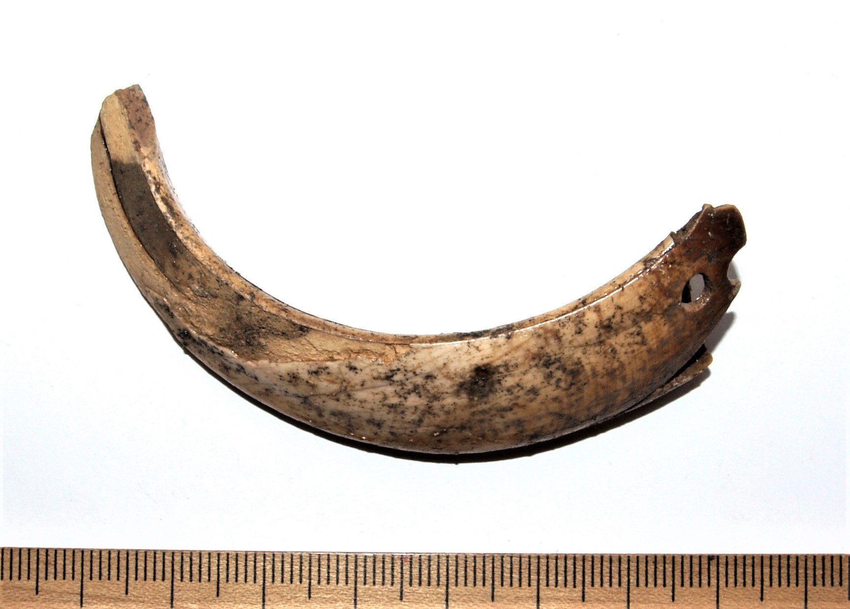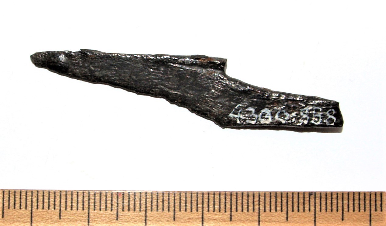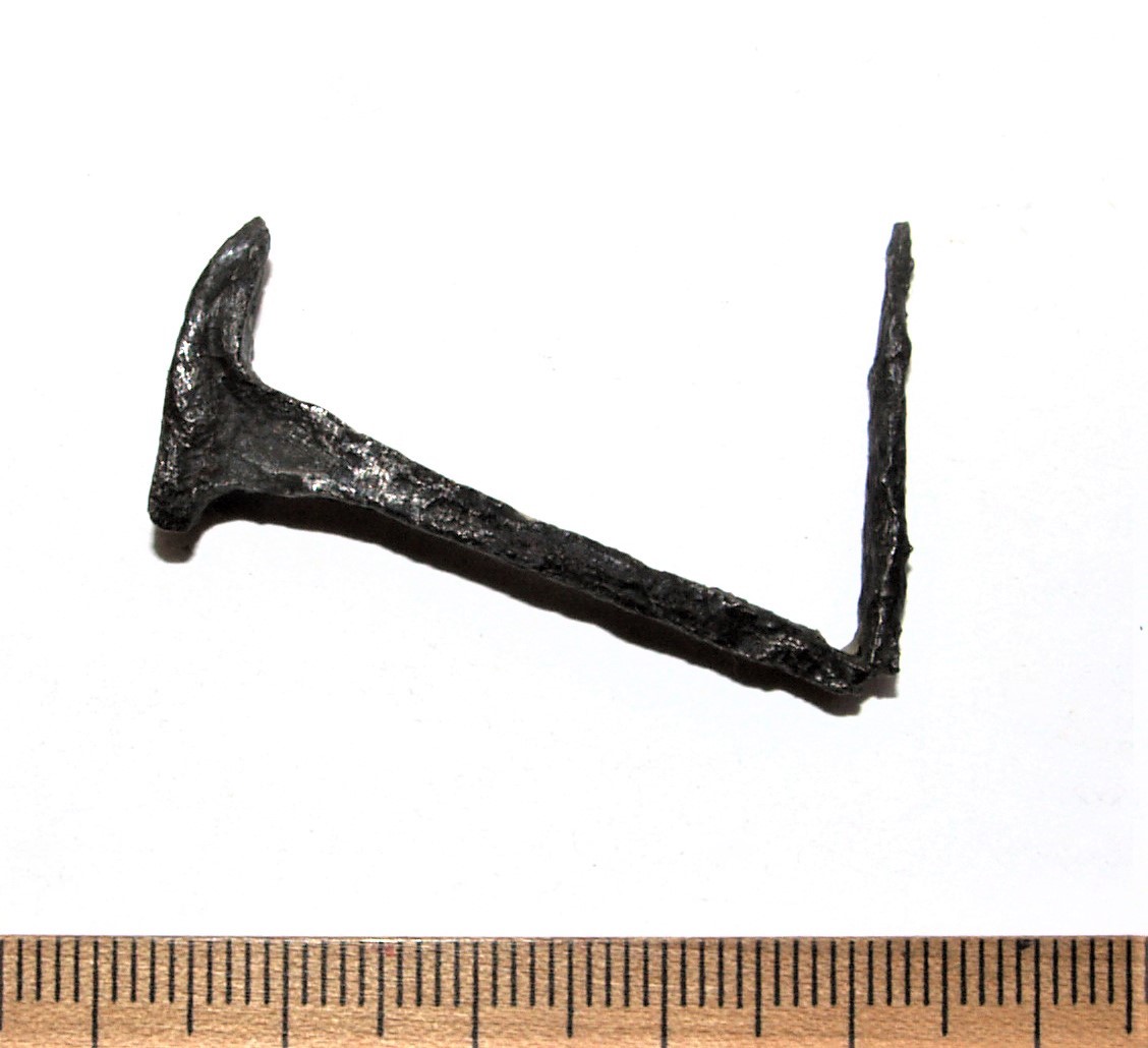 Liiliakujuliste otstega hoburaudsõle katke, vasesulam. Sarnane sõlg on leitud Valjala kiriku I matusest 1971. aastal (Mägi et al 2019). Kaare kuju ja analoogide põhjal Põhja-Kuramaa keskaegsetel laibakalmistutel ja Peetri kiriku juures Riias võib antud sõle dateerida 13. – 14 sajandisse, kuigi sarnased olid levinud kuni 15. sajandi III veerandini (Vaska 2017, 62-64).