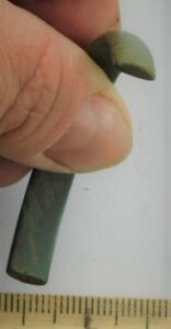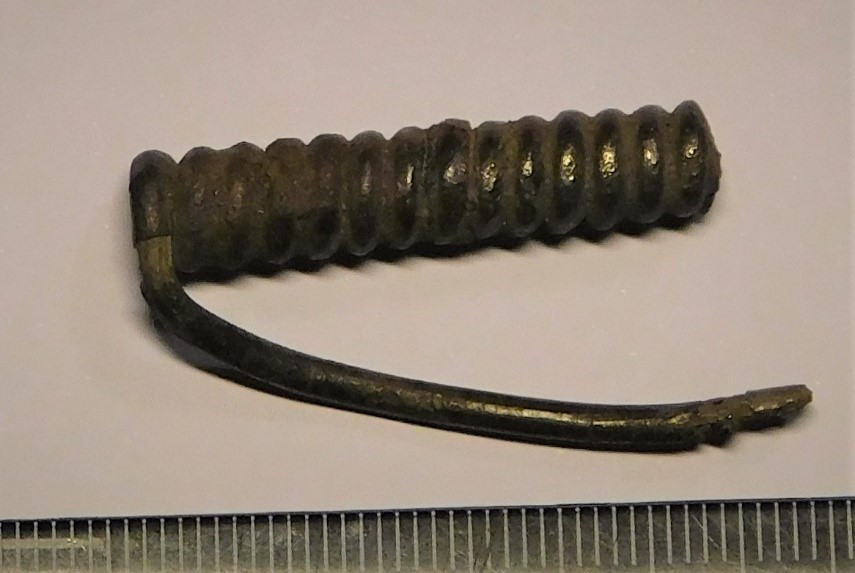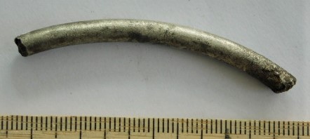 Ambsõle katke, hõbe. Ümber raudvarda keeratud spiraaltelg koos pinge katkega. Hõbedast pinge ristlõige muidu ümar, aga katke lõpus muutub lamedaks – on ilmselt olnud kinnitatud kaare külge.