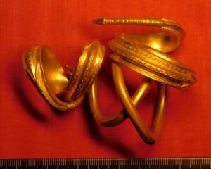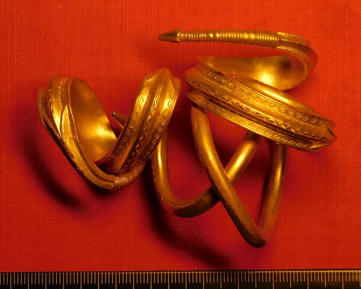 Kuldvõru (rulli keeratud käe- või kaelavõru), maopeakujuliste otstega. Tüüp C (Fernstål 2004). Kaal 175 g. Maopeakujulised otsad on üldtermin tervele reale kullast kaelavõrudele, käevõrudele (sh. spiraalkäevõrud) ja sõrmustele Põhja-Euroopas. Maopeaotstega võrusid kasutati võrdlemisi lühikese perioodi jooksul 210-330 pKr. Mitmete uurijate arvates olid need teatud vürstlike või kuninglike suguvõsade sümbolid, mis seletaks ka nende seostumise nii meeste kui ka naistega. Suur osa taolisi võrusid on leitud ohverduskohtadest (Törnblad 2017).