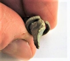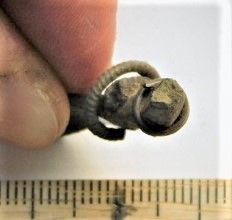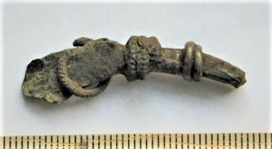 Raudeseme katke (odaotsa putkest?). Kumer plaat. Putke läbimõõt oleks sel juhul ca 2,5 cm.