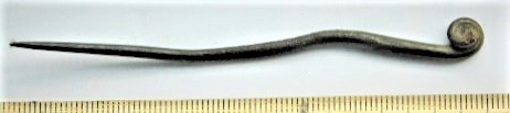 Sõlenõel, pronks või hõbe. Võimalik, et samasuguse ambsõle nõel, nagu SM10862:51. Peaosa aasaks keeratud ning selle aasa vahel tundub olevat säilinud veidi rauda, s o jäänus spiraalteljest.