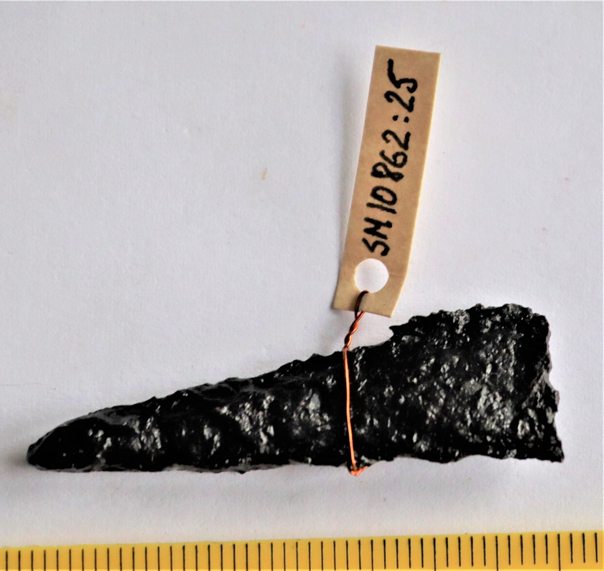 Ambsõle (?) kuldplateeringu tükk, arvatavasti kaare pealt. Kohrutatud ornament, kaks nupukeste vööndit ning nende vahel kaks kaldkriipsude vööndit. Ornament sarnaneb sellele, mis on sõle nr SM10862:18 peal.