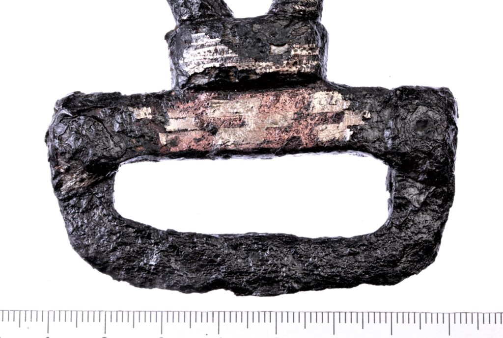 Jalus, raud+hõbe. Sarnaseid on leitud nt Birkast ja Hedebyst, Üks on varem teada ka Saaremaalt.