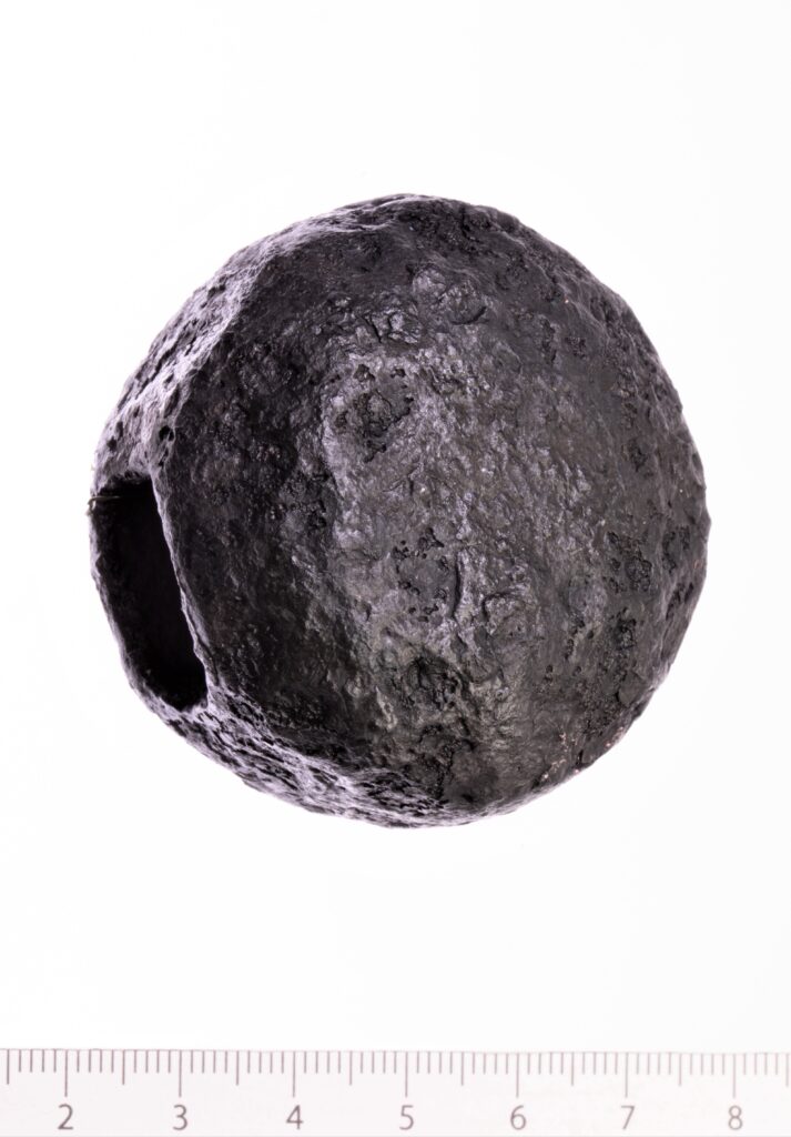 Kettakujuline mõõganupp, raud. Sellised mõõganupud võib Lätis ja ilmselt ka Saaremaal dateerida peamiselt 12. sajandi teise poolde ja kogu 13. sajandisse. Lääne-Euroopast on sarnase kujuga mõõganuppe teada ka varasemast ajast. Kettakujulisi mõõganuppe Eestis ja Lätis on seostatud ristisõdadega, kuid leitud üsna mitmeid ka kohalikest matusekohtadest, Saaremaal kivikalmetest ja Lätis laibamatustest. Üks on leitud ka Mārtiņsala linnusest Daugava alamjooksul (Mägi 2002, 87; Tomsons 2012, 148-152).