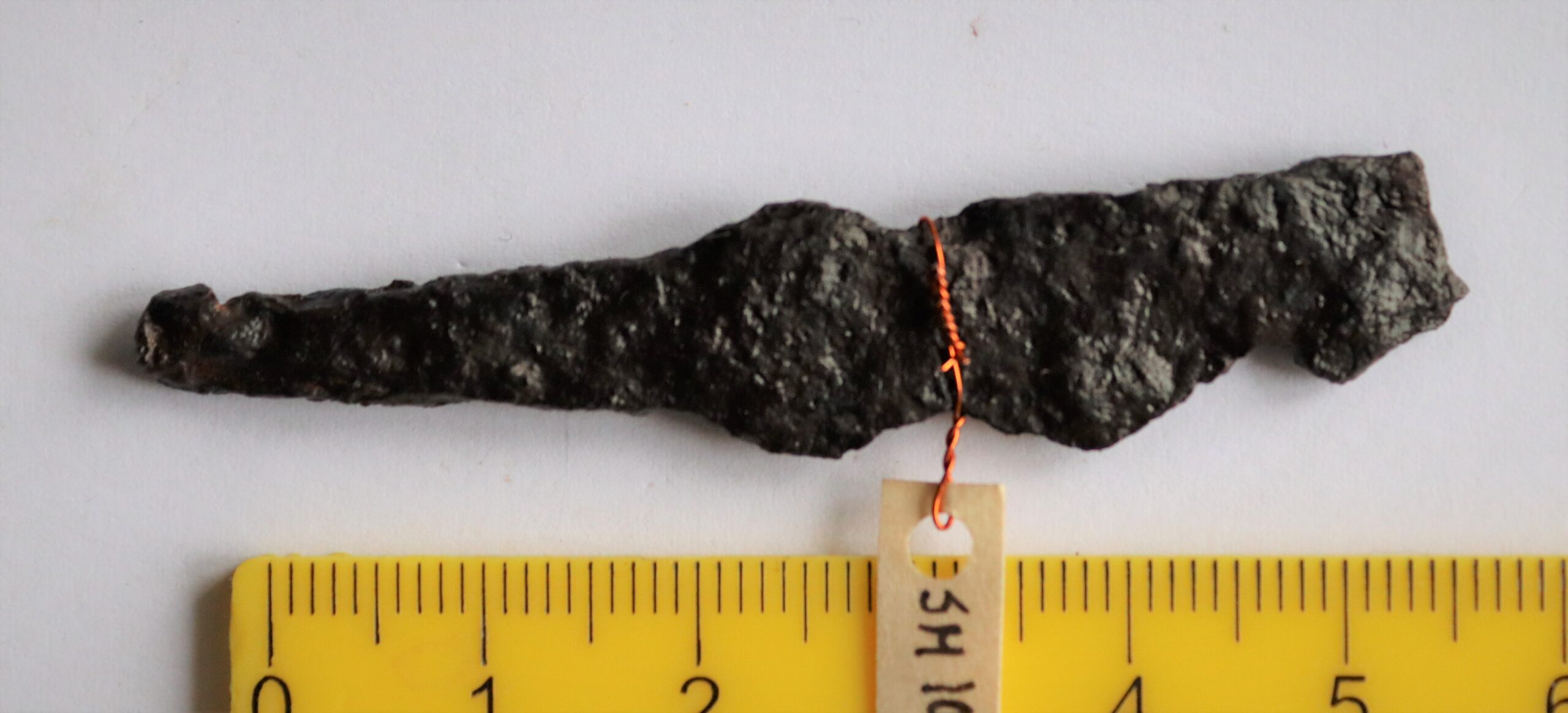 Noa katke, raud. Roots ja osa terast. Rootsu ristlõige lame nelinurk, üleminek terale sujuv.