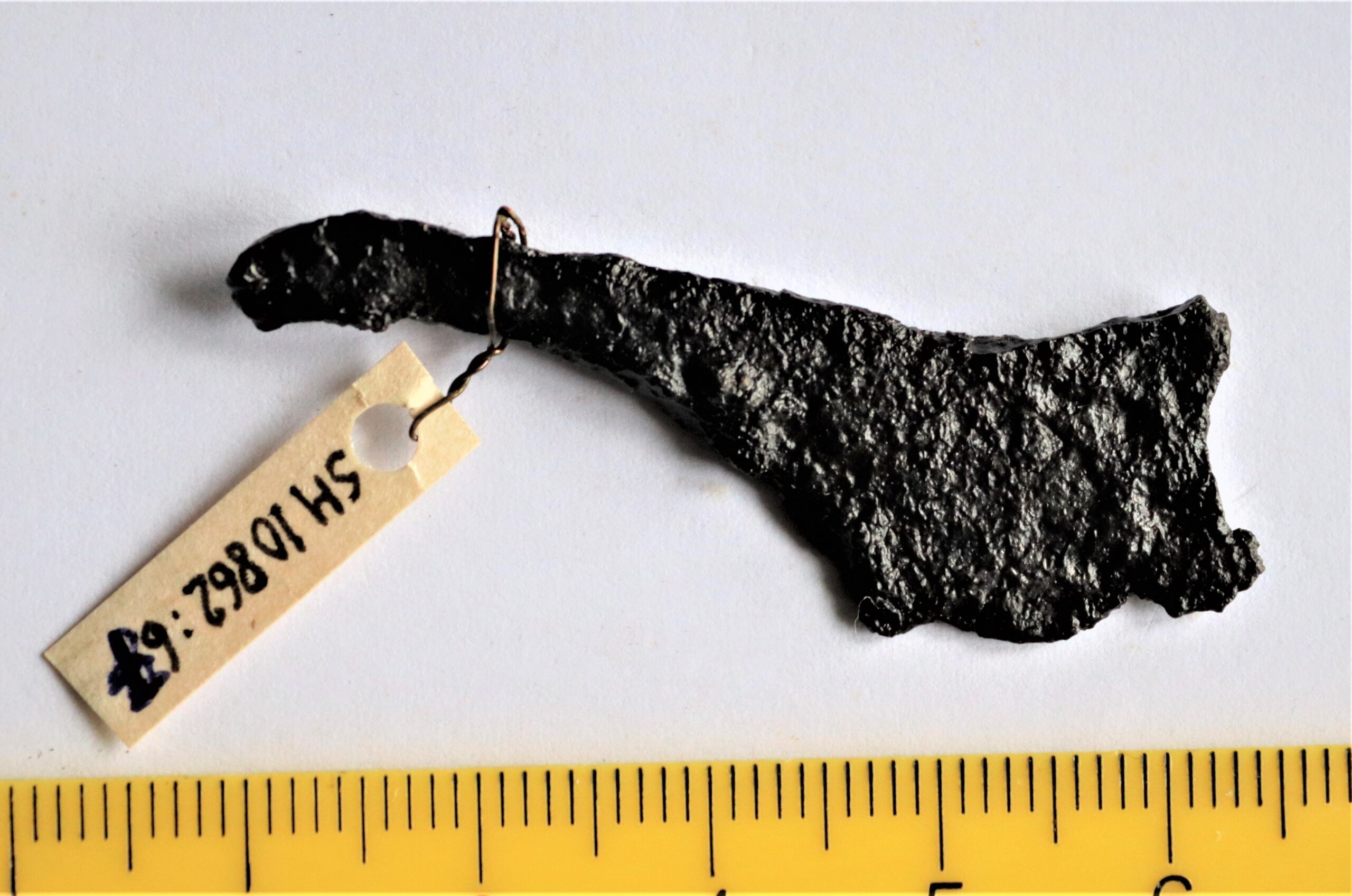 Nuga, raud. Selg veidi kumer, 6 mm lai. Rootsu ristlõige lame nelinurk, rootsu tipp murdunud.