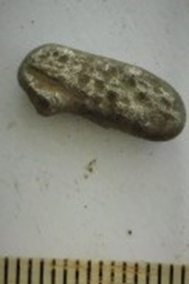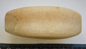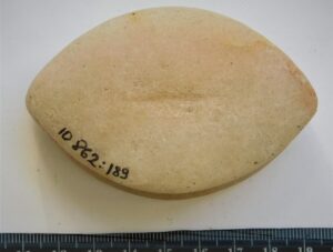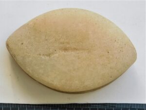 Tuluskivi, teravovaalne. Helebeeźist kivimist. Ovaalseid tuluskive on leitud Eestist ja naabermaadest mitmetest peamiselt rooma rauaaegsetest peitleidudest ja kalmetest, samuti juhuleidudena. Eesti ja Soome arheoloogias käsitletakse neid tavaliselt rituaalsete esemetena, Skandinaavias ka staatuse sümbolitena (Oras et al 2018; Monikander 2015).