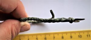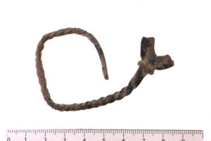 Kaelavõru katke, pronks. Lame aasots, mille üks külg kaunistatud sõõridega. Aasa juures kaar tordeeritud ca 9 cm ulatuses, seejärel kaar ümmarguse ristlõikega.