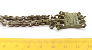 Rinnakee vahelüli ja kahekordsetest rõngaslülidest keti katke, vasesulam.