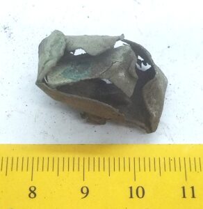 Pirnikujuline nelja soonitud lehega kuljus, vasesulam. Sellised kuljuseid on tavalised leiud eriti põletusmatustega kivikalmetes, aga ka näiteks Siksälä kalmes (Mägi 2002, tahv. 33: 7; Valk et al. 2012, 24, 45-46, 310). Ka Lätis on selliseid kuljuseid leitud koos 10.–12. sajandisse dateeruvate keekandjatega (Spirgis 2008, 148, 399, 406, 412 jt.). Rainio rühm 3a või 3b (Rainio 2010, 28).