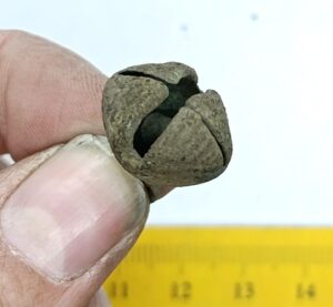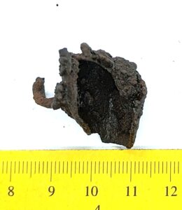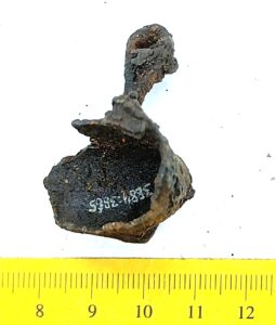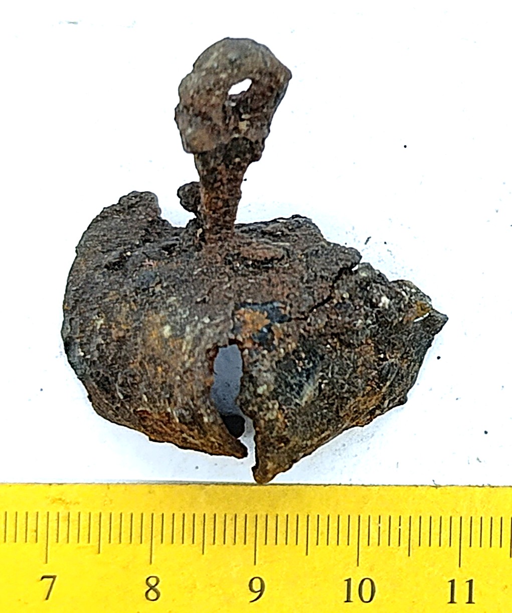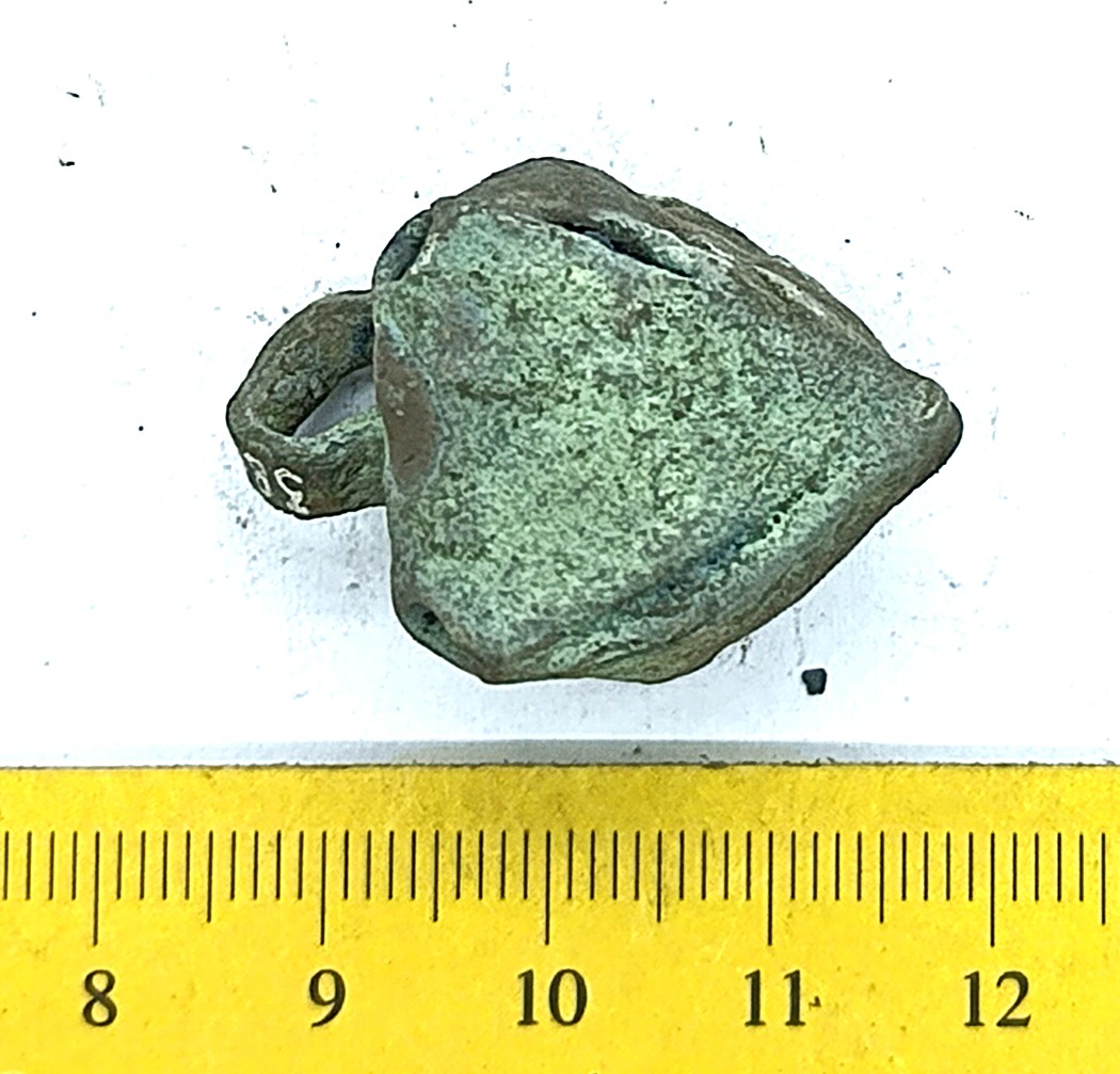 Pirnikujuline nelja soonitud lehega kuljus, vasesulam. Sellised kuljuseid on tavalised leiud eriti põletusmatustega kivikalmetes, aga ka näiteks Siksälä kalmes (Mägi 2002, tahv. 33: 7; Valk et al. 2012, 24, 45-46, 310). Ka Lätis on selliseid kuljuseid leitud koos 10.–12. sajandisse dateeruvate keekandjatega (Spirgis 2008, 148, 399, 406, 412 jt.). Rainio rühm 3a või 3b (Rainio 2010, 28).