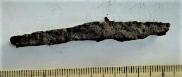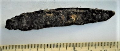 Mõõgatupe otsiku katke, pronks. Kazakevićiuse tüüp I – Skandinaavia mõjutustega baltipärane tüüp, mis on levinud Kuramaal ja Preisimaal. Sarnaseid on leitud ka Saaremaalt.