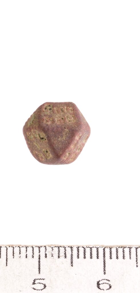 Kaaluviht, fassetitud, pronks. Nelinurksetel tahkudel kuuest sõõrist tähistus, kolmnurksetel tahkudel ühest sõõrist. Sellised vihud dateeritakse tavaliselt 9. sajandi teise poolde või 10. sajandisse.