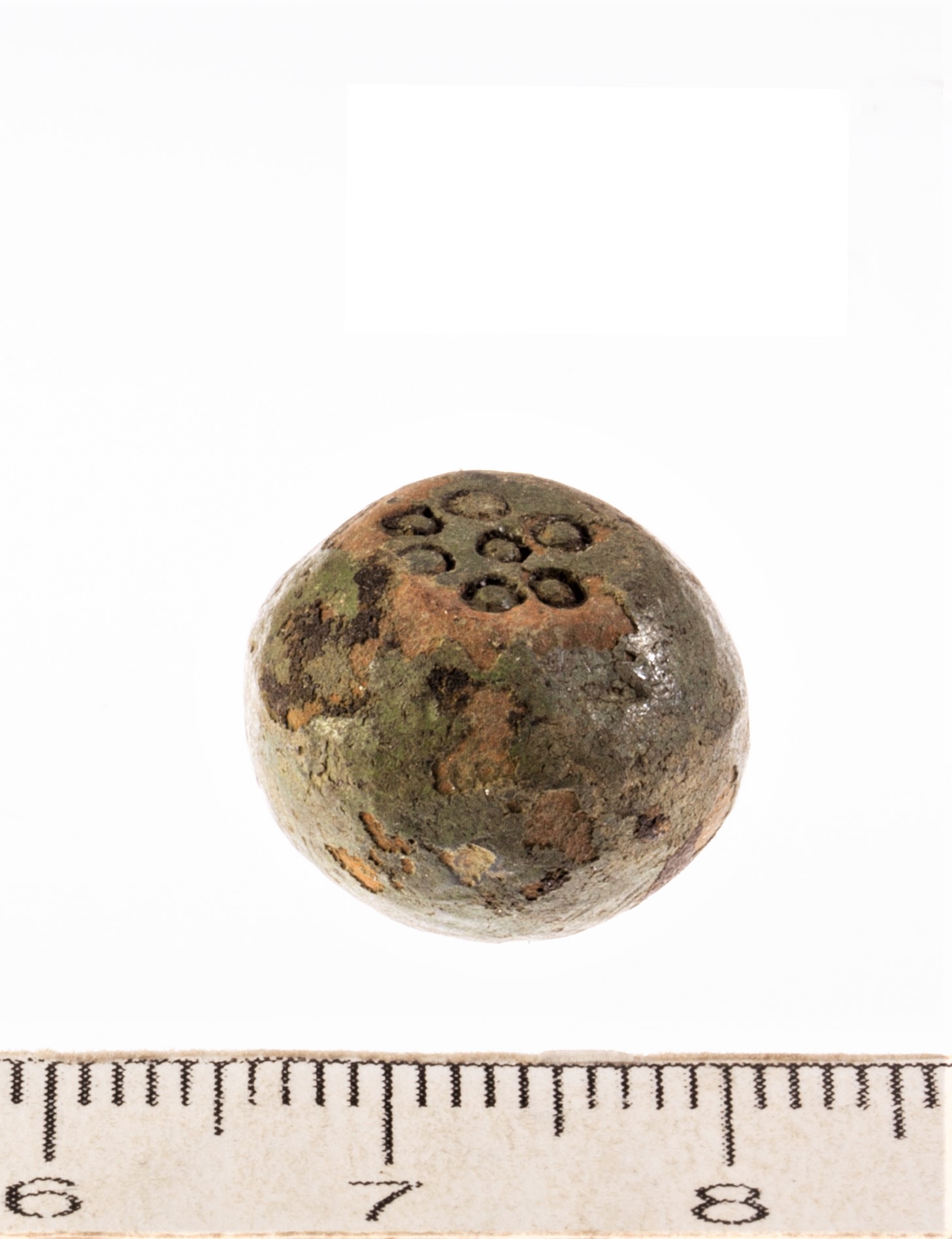 Kaaluviht, kerakujuline, pronks+raud. Lamedatel otstel seitsmest sõõrist märgistus. Ühel otsal lisaks ümmargune lohk. Lätis on sellised kaaluvihid dateeritud 11. sajandi lõppu ja 12. sajandisse (Berga 2017).