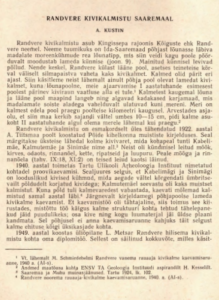 Kustin, A. (1962). Randvere burial site in Saaremaa. (EST: Randvere kivikalmistu Saaremaal.) – Muistsed kalmed ja aarded. Arheoloogiline kogumik II. (toim.) Harri Moora.