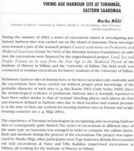 Leimus, I. (2005). Rare viking age coin hoard at the Saaremaa Museum. (EST: Haruldane viikingiaegne mündiaare Saaremaa Muuseumis). Saaremaa Muuseum, kaheaastaraamat 2003–2004 (260−270). Kuressaare: Saaremaa Muuseum.