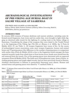 Peets, J.; Allmäe, R.; Maldre, L. (2011). Archaeological investigations of Pre-Viking Age burial boat in Salme village at Saaremaa. Arheoloogilised välitööd Eestis = Archeological fieldwork in Estonia, 2010, 29−48.