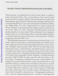Maldre, L. (2011). Archaeozoological Material of the First Salme Boat. Saaremaa Muuseum, kaheaastaraamat 2009–2010 (30−47). Kuressaare: Saaremaa Muuseum.