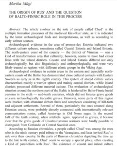 Mägi, M. (2016). The origin of Rus’ and the question of Balto-Finnic role in this process. In: Jackson, T. (Ed.). The Earliest States of Eastern Europe. Old Rus’ and Medieval Europe: the Origin of States. (231−257). Moscow: Dmitriy Pozharskiy University.