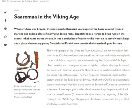Mehis Tulk (toim). (2021). The archaeological research of Osiliana is focused on the 13th century. (EST: Osiliana arheoloogiauuringud keskenduvad 13. sajandile.) – Saarte...