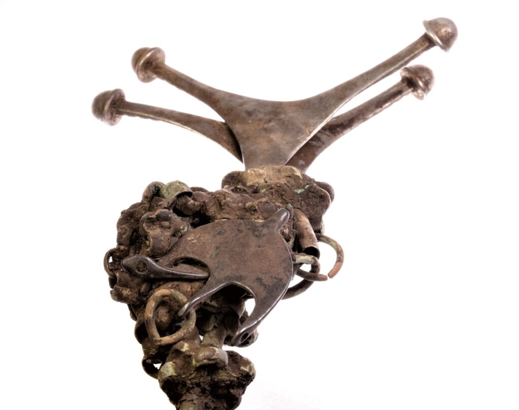 Fragment of a bronze ring-headed pin with a cross-shaped extension.