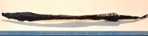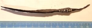 Javelin head with short rhomboid blade and a long tang that thickens in the lowest part, iron. According to the context it can be dated mainly to the 12th-13th centuries, but as suggested by Brūzis, such rhomboid blades were also characteristic of 14th century javelins (Brūzis 2016, 120-121, Pl. I XIV).