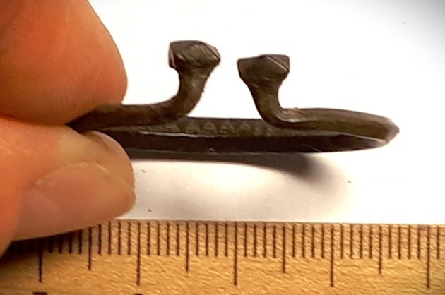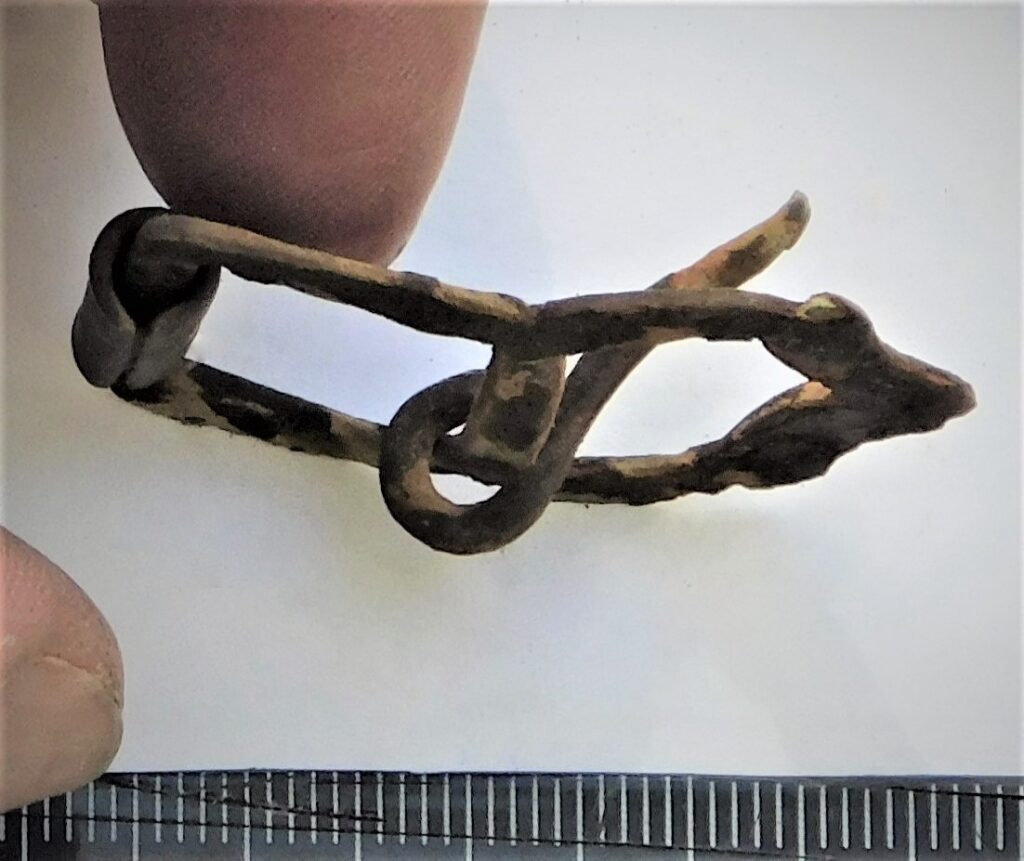 Penannular brooch with faceted terminals, copper alloy, decorated. Widespread type in Estonia, mainly in the 12th century.