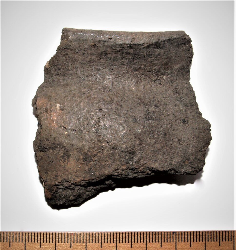 Pot rim, hand-made ceramic. Similar pots have been found e g in Varbola, Pöide, and Soontagana hill-forts.