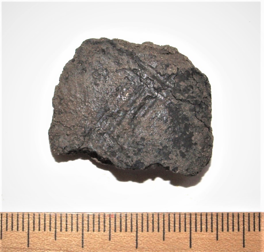Potsherd of a pot wall, hand-made ceramic, decorated with rhombic checker. Pots with very similar decoration have been found e g at Rahu stone grave near Valjala, or at Soontagana hill-fort in West-Estonia. Rhombic checker decoration on ceramic was characteristic for Saaremaa, West- and NW-Estonia, the variant as here mainly for Saaremaa.