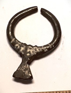 Artefact, probably penannular brooch with a gnarl, copper alloy.