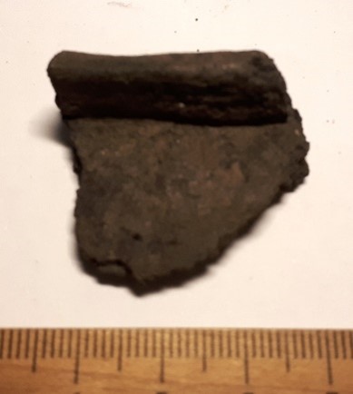 Pot rim, hand-made ceramic. Similar pots have been found e g in Varbola, Pöide, or Soontagana hill-forts.