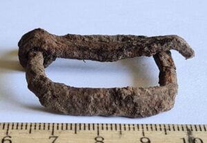 Buckle, iron. With square frame. Probably 12th-14th century, but may be later.