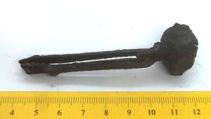 Bridle bells, iron. These iron bells were attached to bridles. In Estonia they have been found from stone graves with cremation burials, where they can also date to the early 13th century.