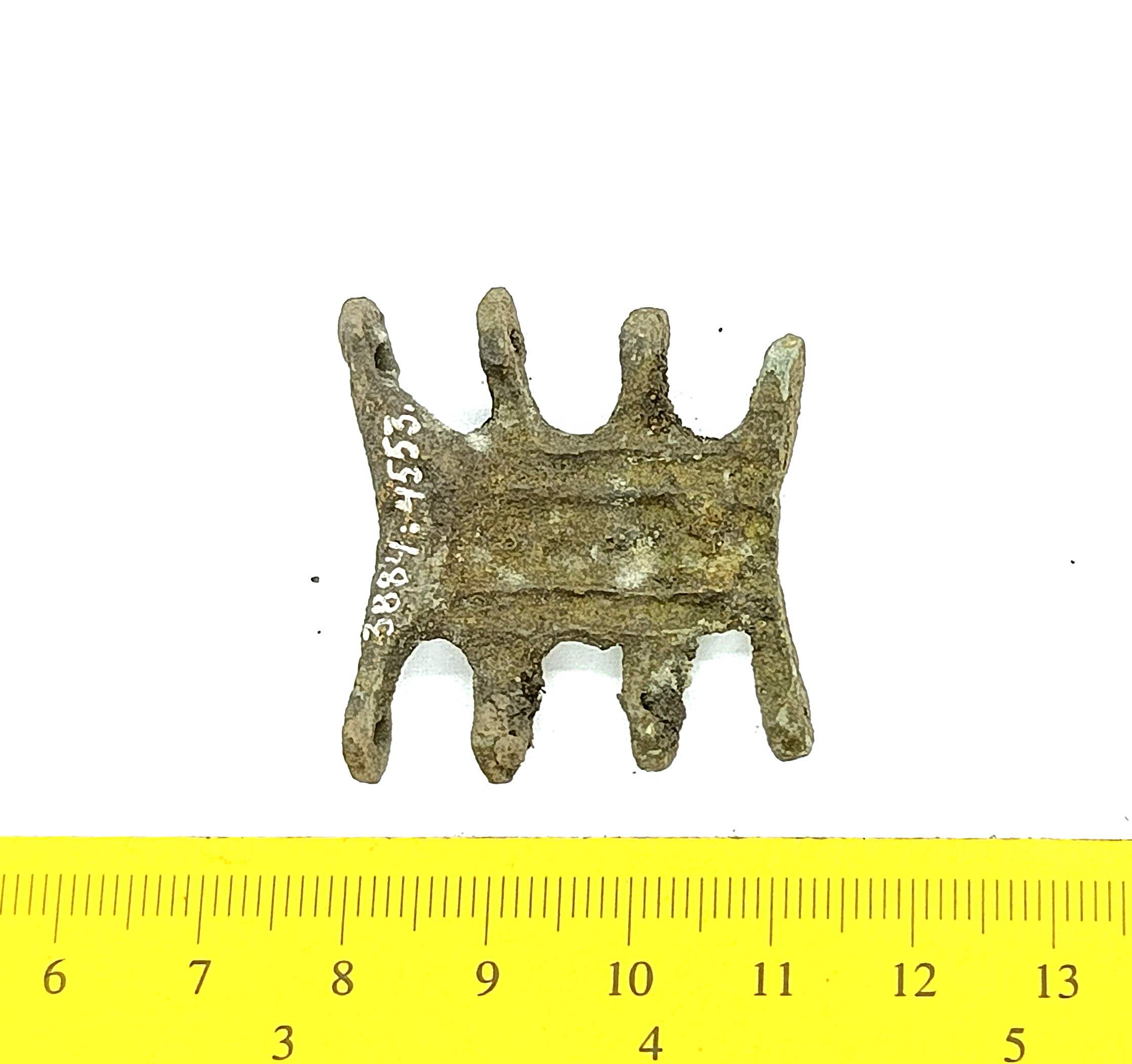 Chain arrangement link, copper alloy. Links of this type are a typical part of chain arrangements found in the 13th-century inhumation graves of Estonian women, but also in the earlier stone graves with mixed cremations. Numerous such links are stray finds. They were worn everywhere in the areas once inhabited by Baltic Finns, and in some other areas, e g in Semigallia (Spirģis 2008, 168–170).