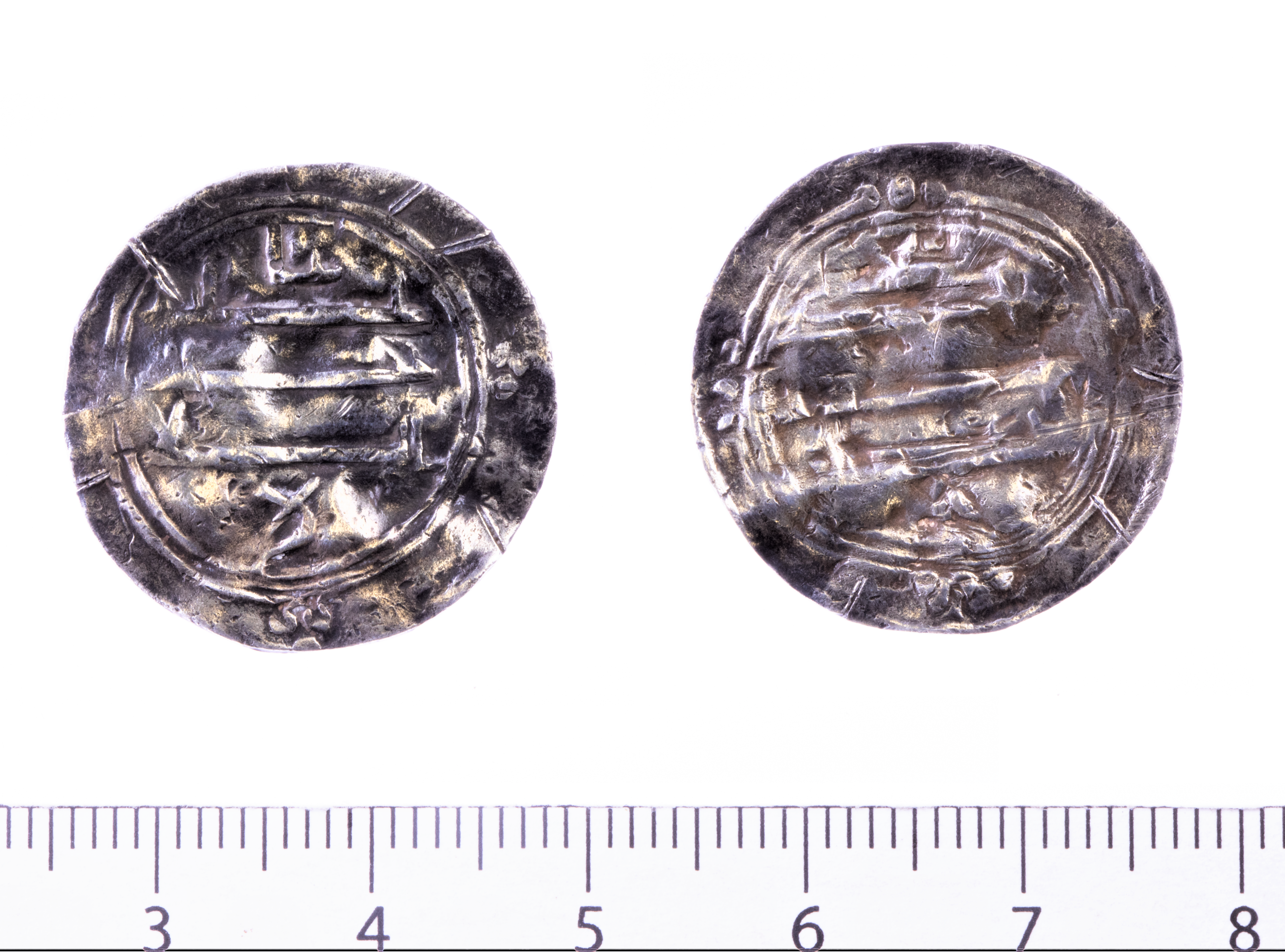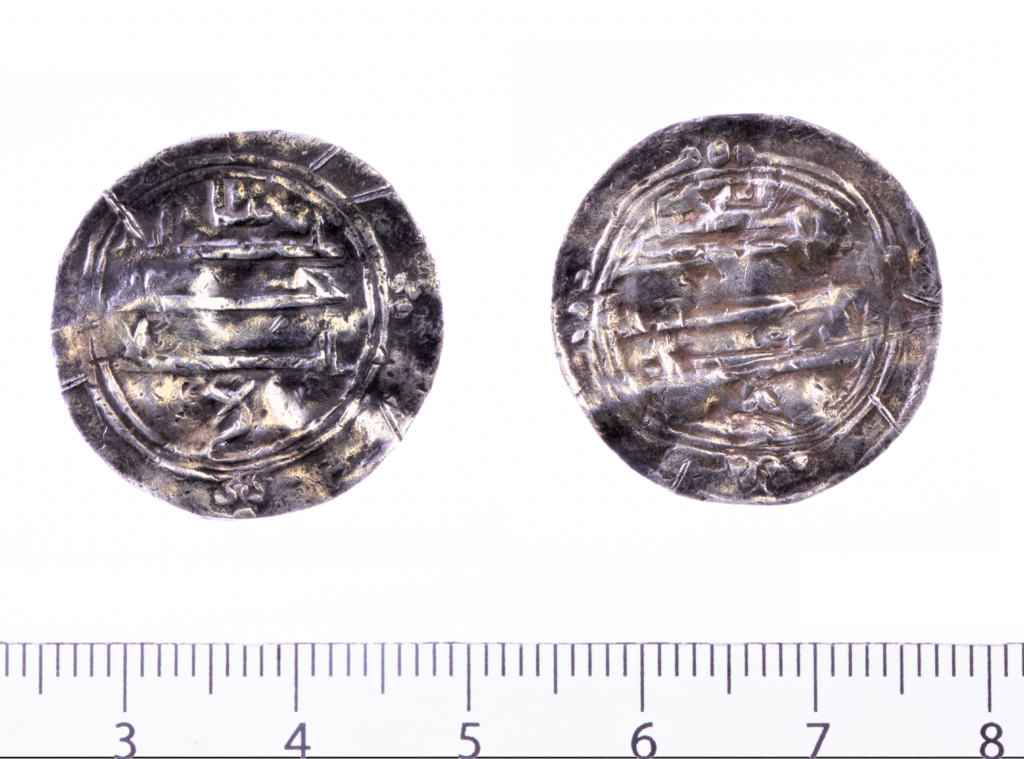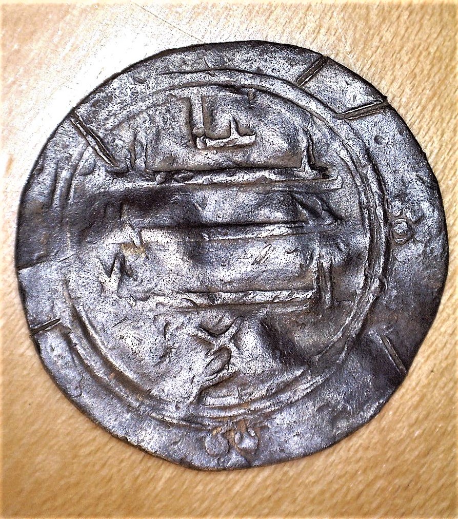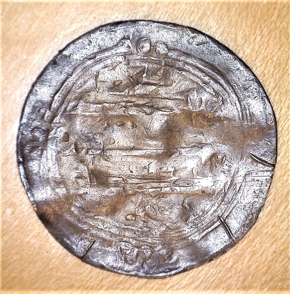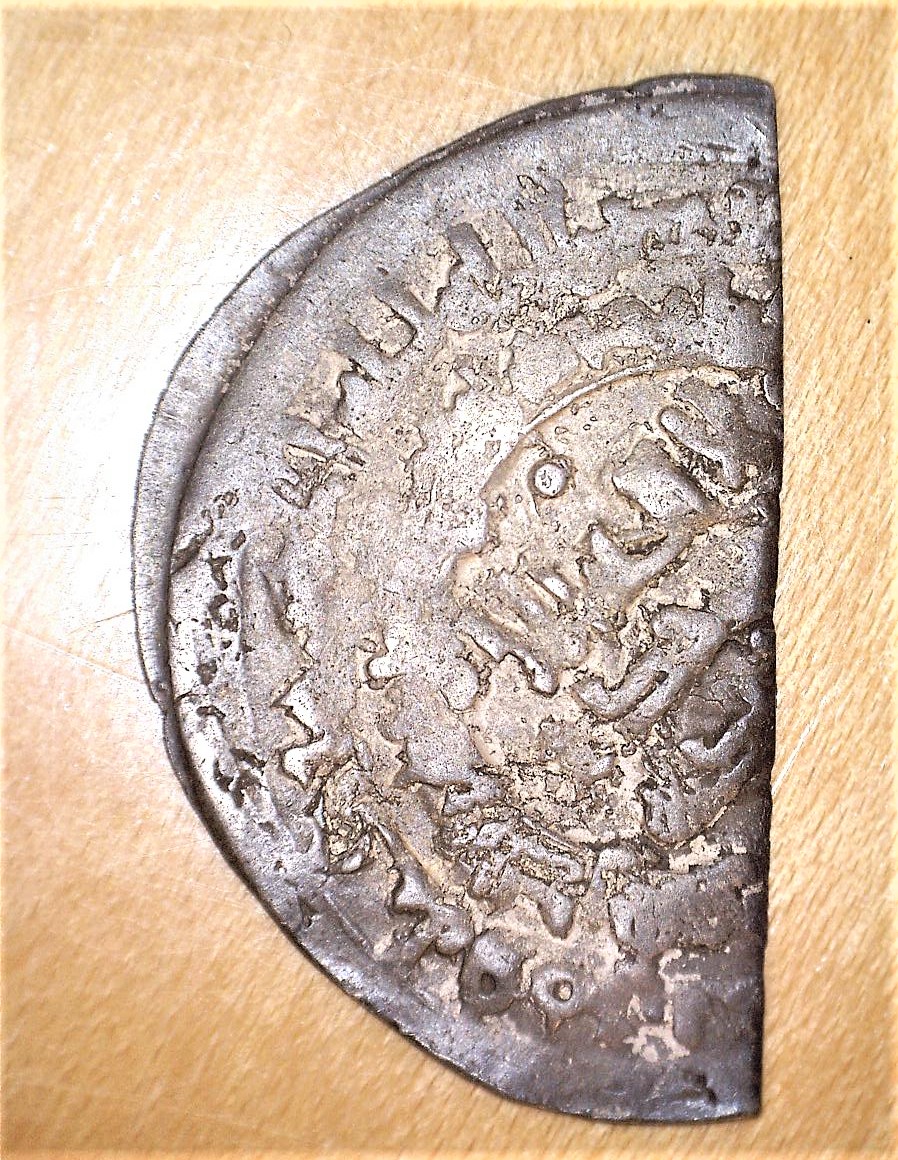 The half of a coin, silver. Samanid dynasty, Nuh ibn Nasr. 1.8 grams, year 331-344 (Islamic calendar).