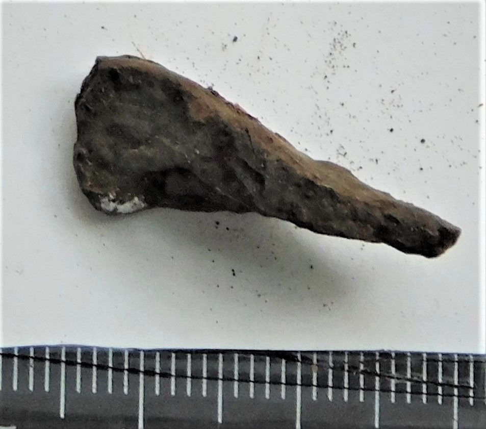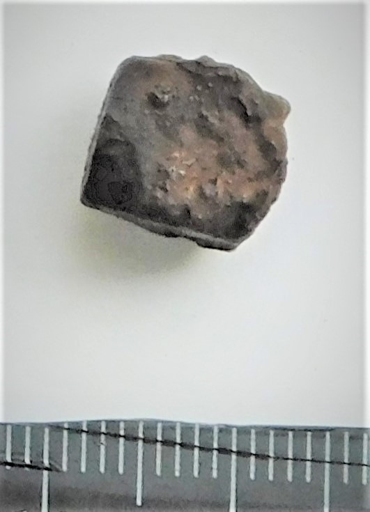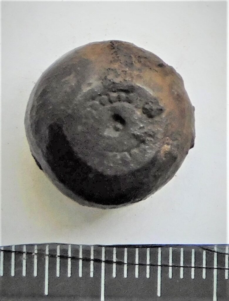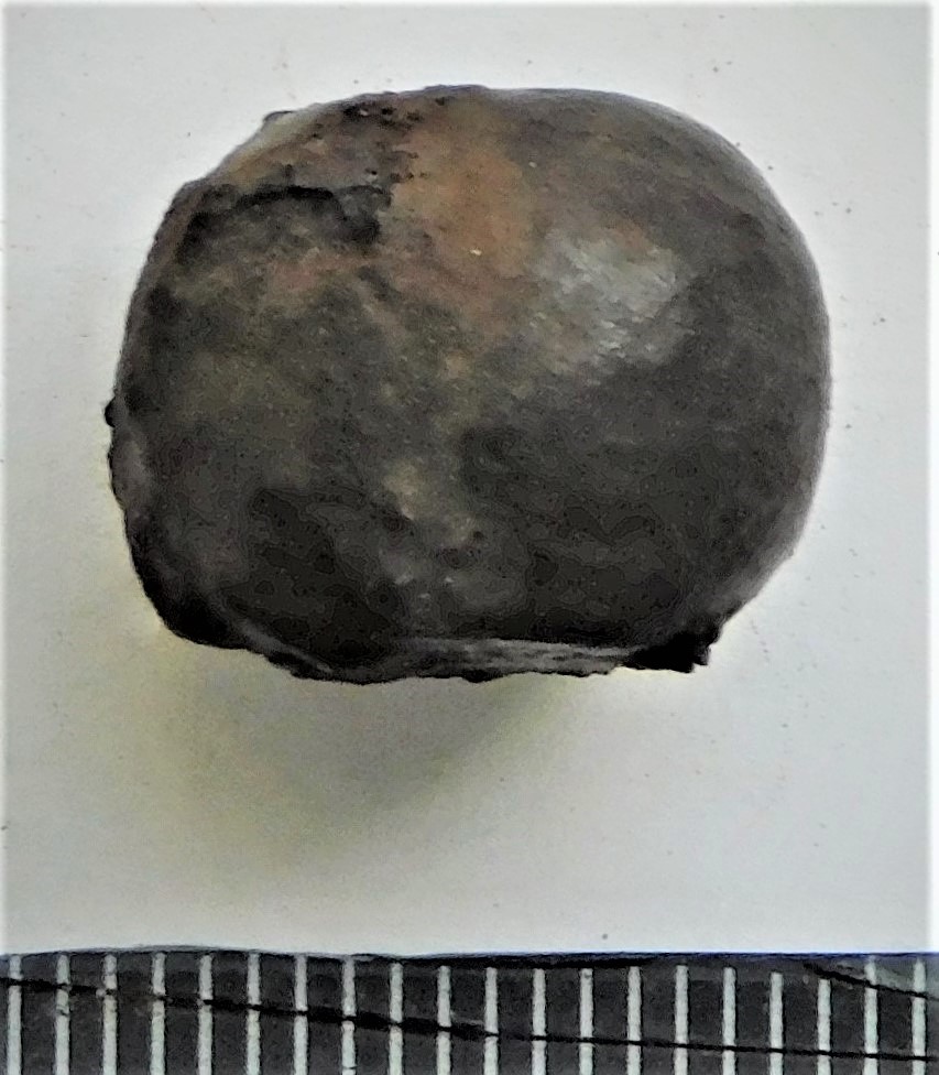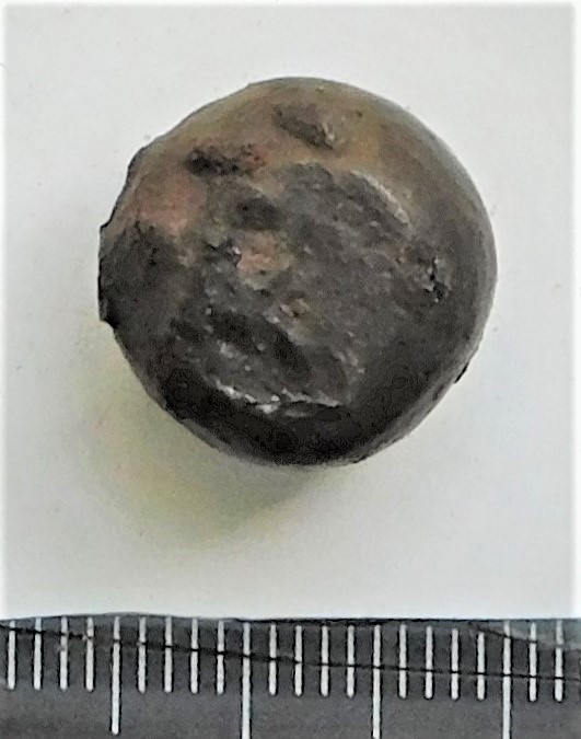Spheric weight, iron + bronze. Faces marked with line formed of small rings. Probably from the end of the 10th or from the 11th. century (Berga 2017).
