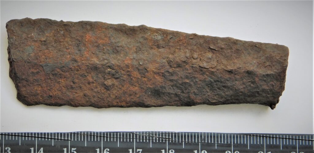 Octagonal weight, iron+bronze. Such weights can mainly be dated to 850-1000 AD.