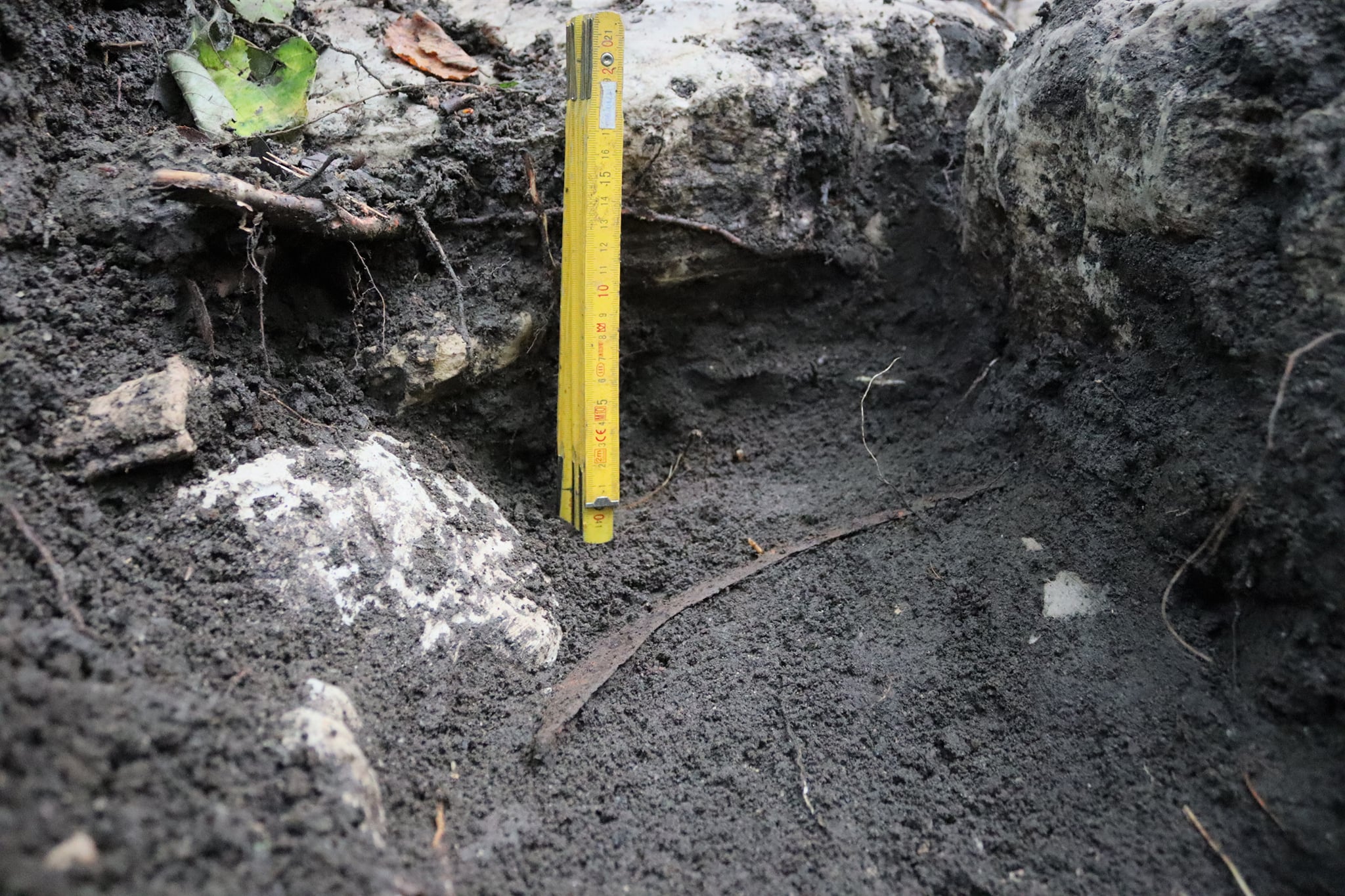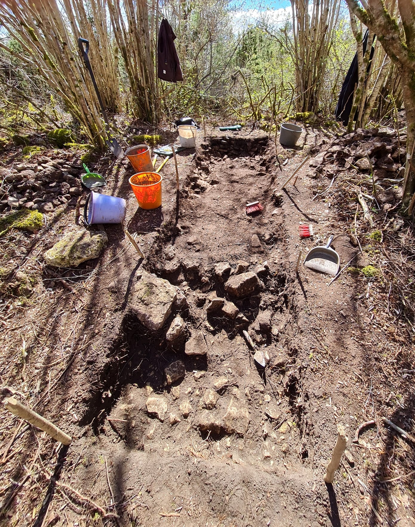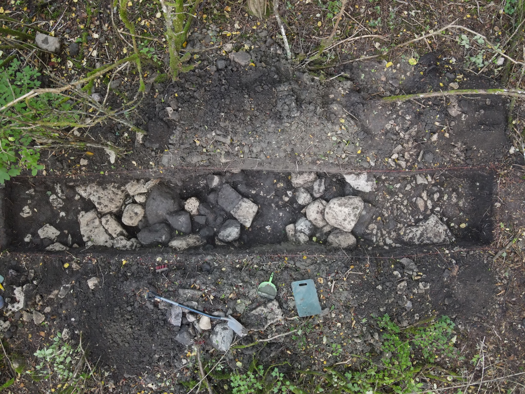 A trench was digged through the wall and the first finds were a pot sherd and animal bones. At the moment the site cannot be further dated, but the potsherd is more likely to be from the first half or from the middle of the Iron Age.