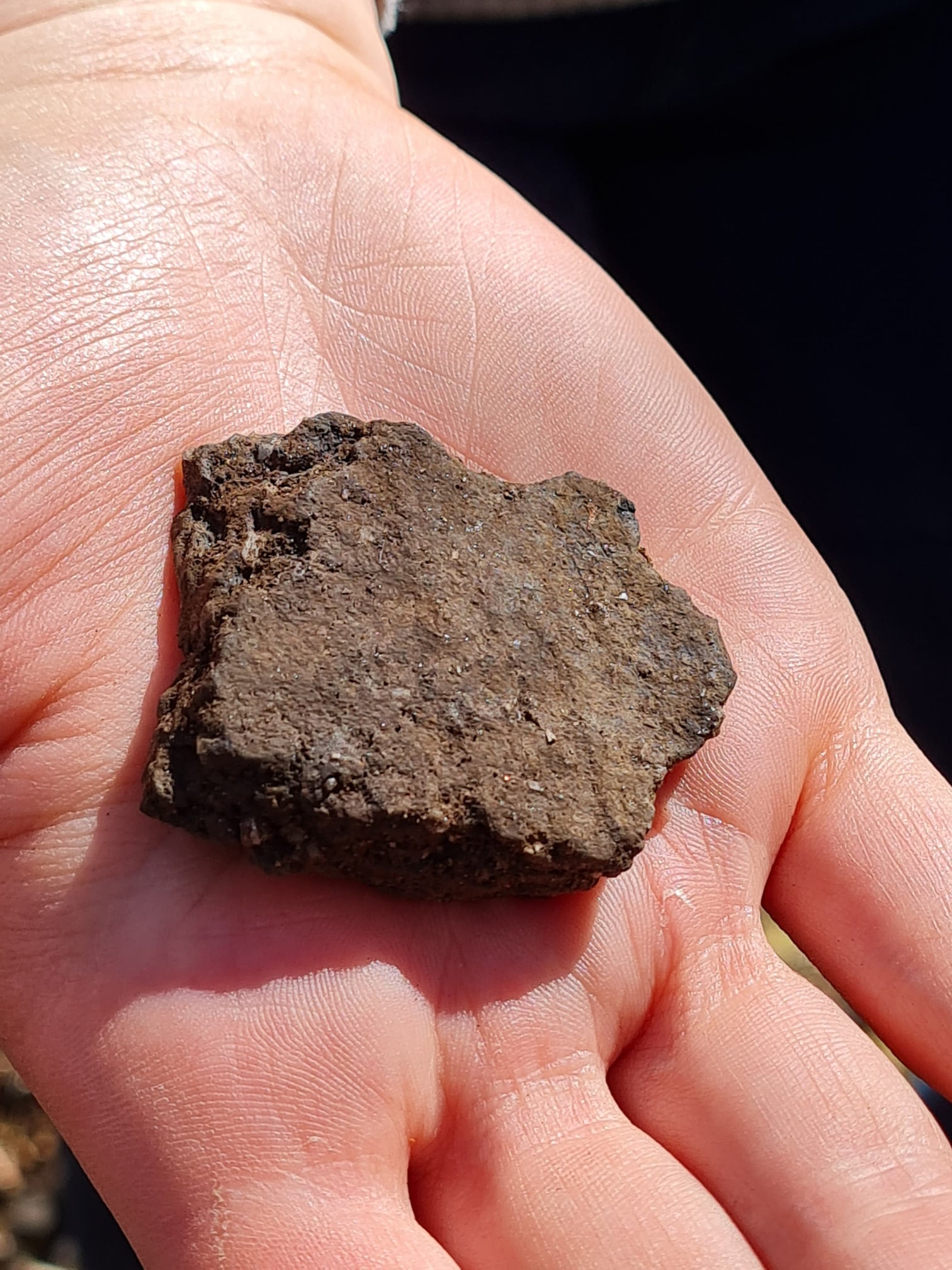 A remarkably large quantity of animal remains for such a small excavation, as well as more than a dozen clay potsherds and burnt clay fillings, were found in the fill. One of the pottery sherds was also located away from the rampart inside the fort.