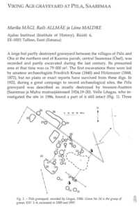 Mägi, M.; Allmäe, R.; Maldre, L. (1998). Viking Age Graveyard at Piila, Saaremaa. Archeological fieldwork in Estonia = Arheoloogilised välitööd Eestis 1997 (99 – 116). Tallinn: Muinsuskaitseamet.