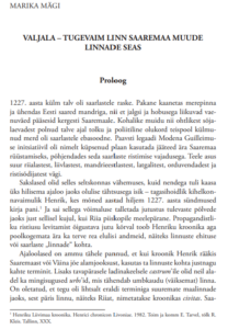 Mägi, M. (2025). Valjala – tugevaim linn Saaremaa muude linnade seas. Pesti, O. (Toim.). Saaremaa muuseum kaheaastaraamat 2023-2024. (3−33). Kuressaare: SA Saaremaa Muuseum väljaanne.