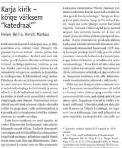 Markus, K., Sandrak, P. S. (2021). Karja kirik ja kihelkond. 13. sajandi Saaremaa ajalugu ühe piirkonna perspektiivist. Saaremaa Muuseum. Kaheaastaraamat, 2019-2020, 37−63.
